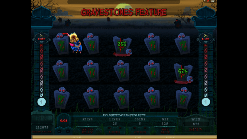 Elixir or Scatter 3 appears on reels three, four and five and launches the Gravestones Feature. There will be 15 tombstones hiding the prizes. It is up to you to choose which of them Alaxe should destroy and you will receive a reward accordingly. However, be careful, one of the tombstones can interrupt this bonus game!